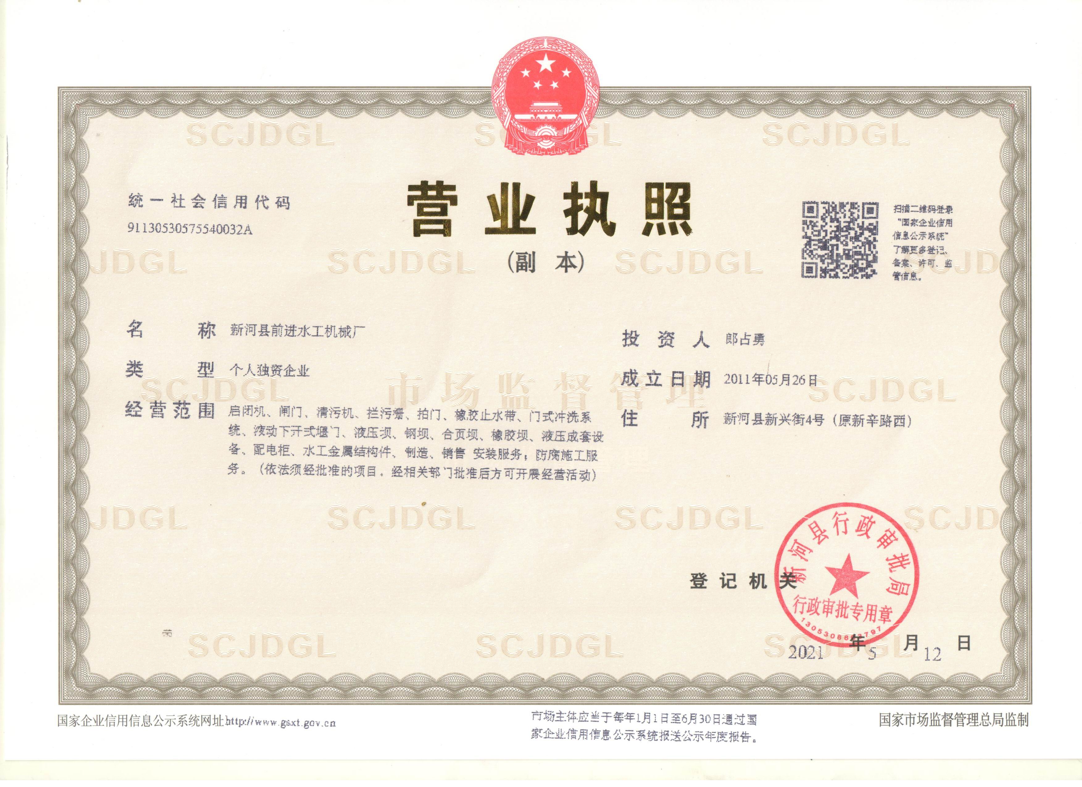 新河縣前進(jìn)水工機(jī)械廠是一家專門從事水利工程設(shè)備研發(fā)生產(chǎn)的廠家,現(xiàn)有員工228人,各類高、中級專業(yè)工程技術(shù)人員近30人,技術(shù)生產(chǎn)工人180多人。公司占地面積14674平方米。公司擁有車、鉗、刨、銑、冷作、鈑金、鑄造等,工種齊全,加工能力和技術(shù)力量雄厚,并具備理化測試手段與儀器設(shè)備。前進(jìn)水工專注景觀閘門,鋼壩,合頁壩,液壓升降壩,液壓閘門,臥倒門,一字門,人字門,液壓啟閉機(jī),卷揚(yáng)啟閉機(jī),螺桿啟閉機(jī),清污機(jī),除污機(jī),閘門,拍門等設(shè)備的研發(fā)與生產(chǎn),是新河水利工程產(chǎn)品行業(yè)的領(lǐng)跑者,不僅在同行業(yè)群中揭起了一次又一次的技術(shù)革新,更為水利工程企業(yè)提供了更高更大的選擇平臺(tái)。
